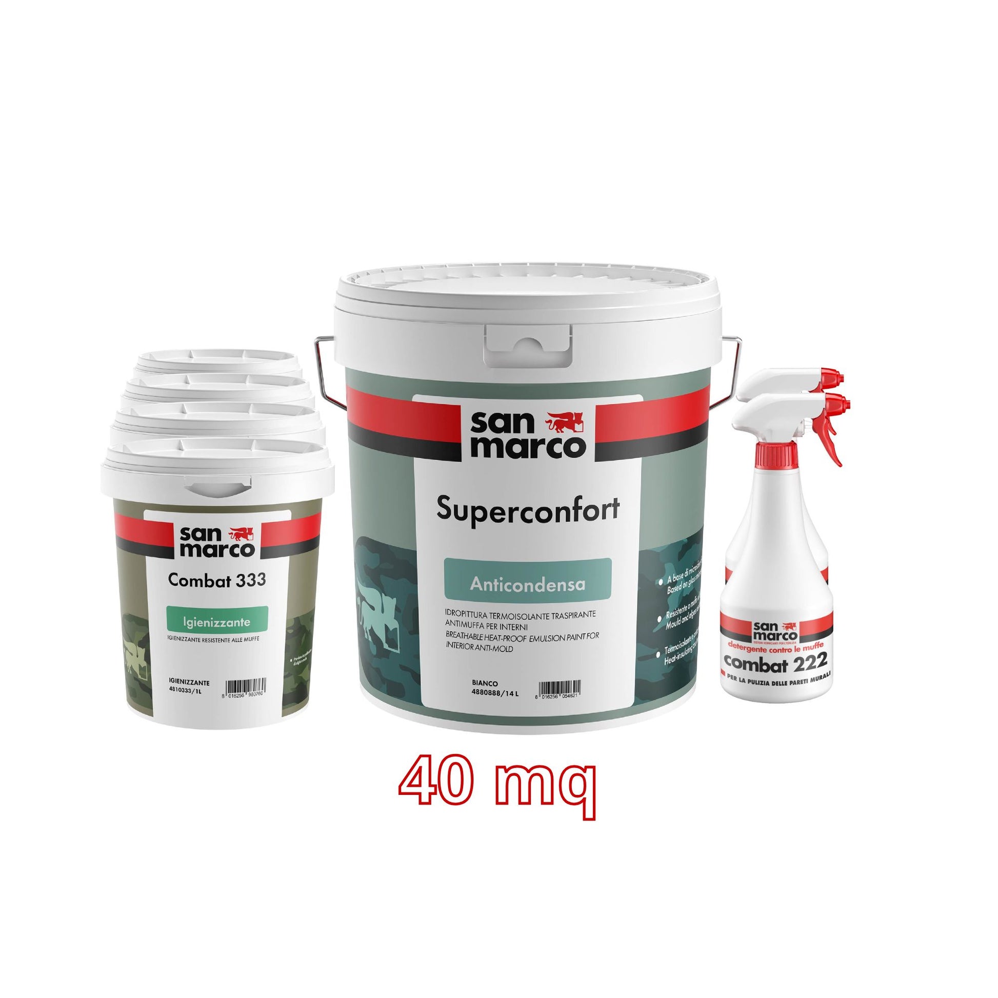 Un ciclo professionale in tre mosse (spruzza • igienizza • dipingi) studiato per trattare fino a 40 m² di pareti interne soggette a muffa e condensa: